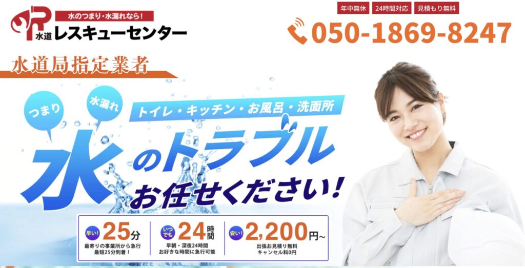 水道レスキューセンターは自社スタッフが対応してくれます。外部業者に頼らないため、費用が安く抑えられています。Googleマップでは、「丁寧な説明と接客で、安心して依頼できた」「深夜でも快く対応してくれた」など評判のよい口コミが多数寄せられています。