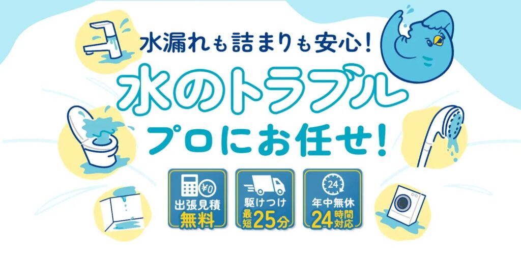 クジラのマークの水道屋さんは、スピーディーな対応が評判の水道業者です。