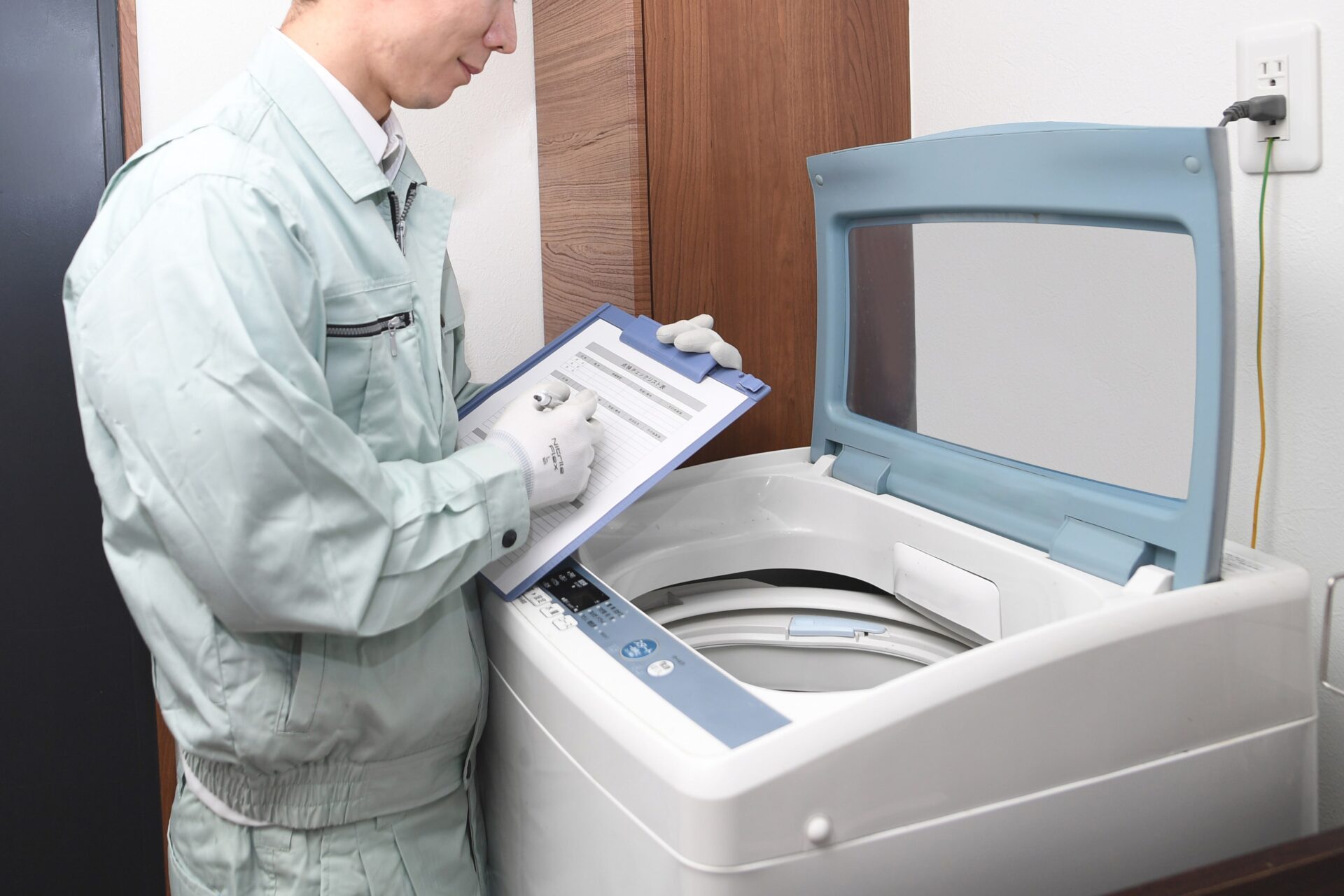 水漏れを発見したら、まずは洗濯機のコンセントを抜きましょう。洗濯機は家電であり、水漏れによって漏電・感電のリスクが高まるためです。